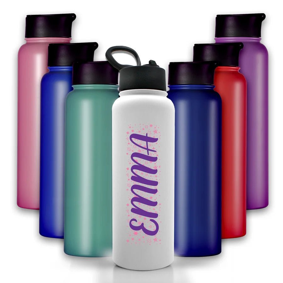 Custom Insulated Name Gift Water Bottle - Stars / Blue is backordered and will ship as soon as it is back in stock.